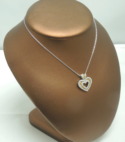 14kt White Gold Diamond Heart Pendant 1.03ct with Yellow Citrine and with 14kt White Gold Chain