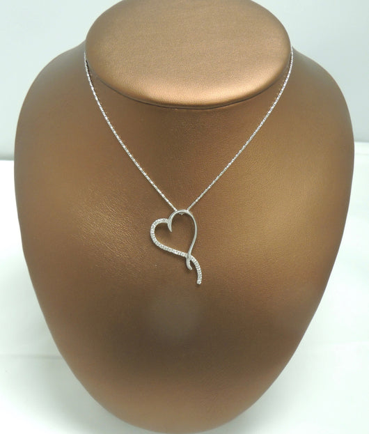 14kt White Gold Diamond Heart Pendant .32ct with 14kt White Gold Chain