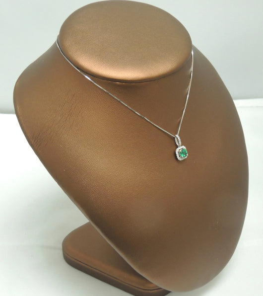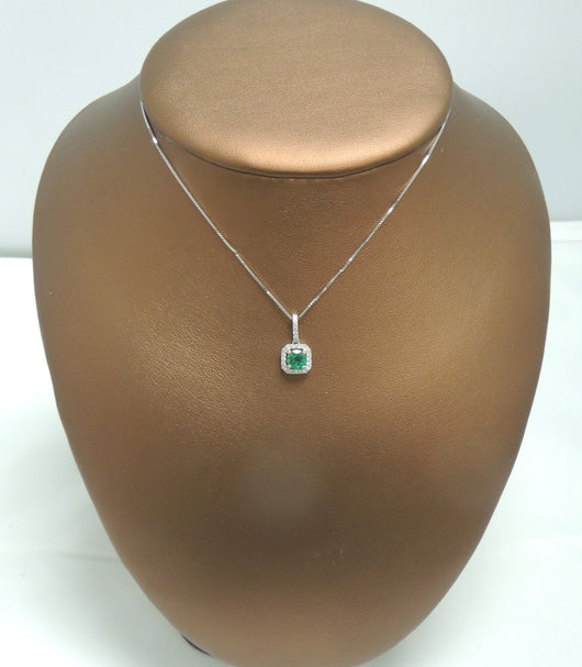 14t White Gold Diamond Pendant .22ct with Emerald .74ct and with 14kt White Gold Chain