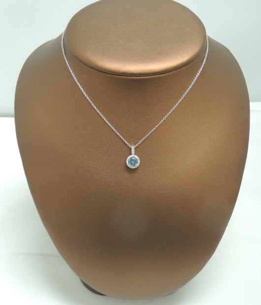 14t White Gold Diamond Pendant .15ct with Blue Topaz and with 14kt White Gold Chain