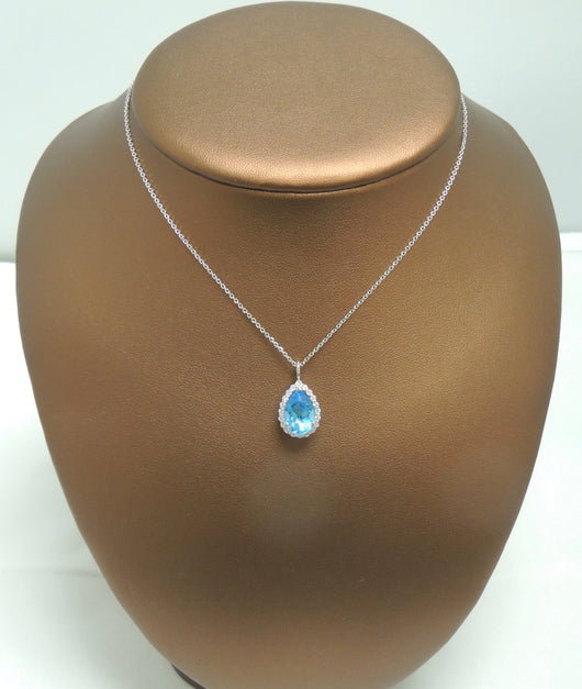 14t White Gold Diamond Pendant .35ct with Blue Topaz and with 14kt White Gold Chain
