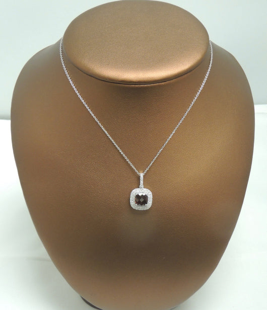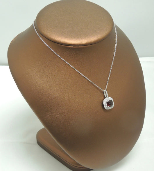 14t White Gold Diamond Pendant .15ct with Garnet and with 14kt White Gold Chain